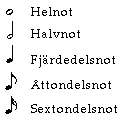 Här stannar vi vid sextondelsnoter, men det finns även trettiotvåondelsnoter och sextifjärdedelsnoter.