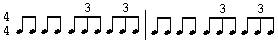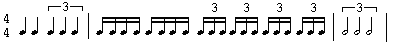 Om du har åttondelar eller sextondelar som är förenade med balkar, räcker det om du skriver en trea över balken. Däremot om du har enstaka ogrupperade noter (som fjärdedelarna och halvnoterna ovan), måste du förena dem med en klammer.